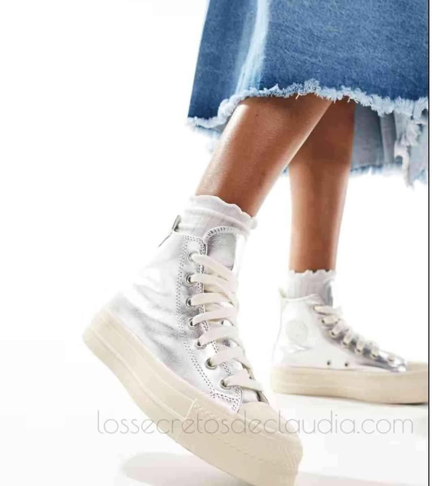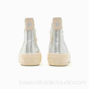 Esta edición limitada de Converse All Star Lift plateadas están fabricadas en tejido PET reciclado, transpirable y flexible.