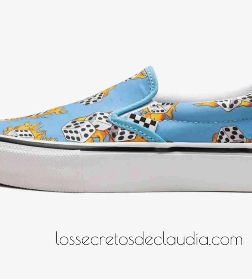 Las Vans cuentan siempre con un diseño original – el modelo slip-on- uno de los reconocidos, esta vez en una combinación de colores y estampado personalizado de dardos. Una colección atemporal, mitica, de culto.