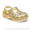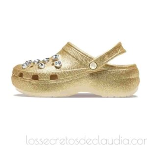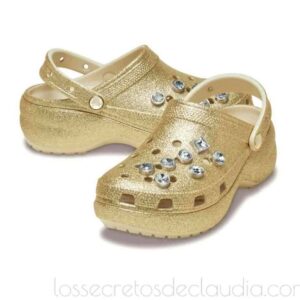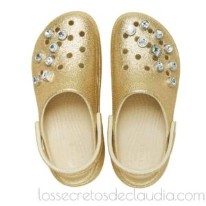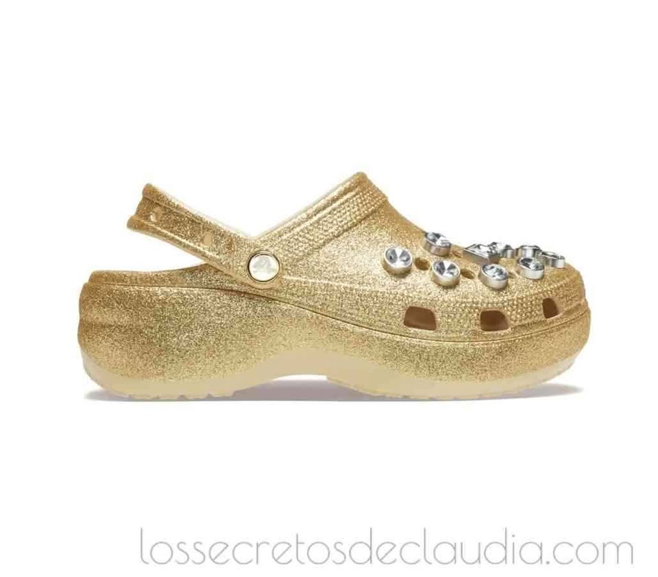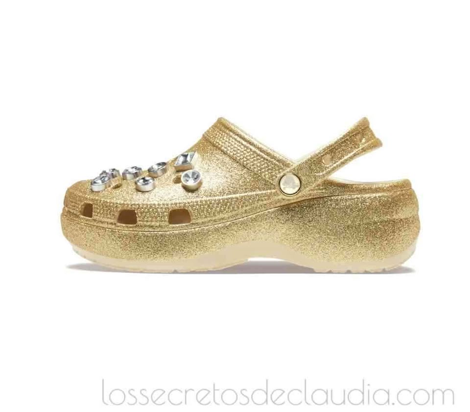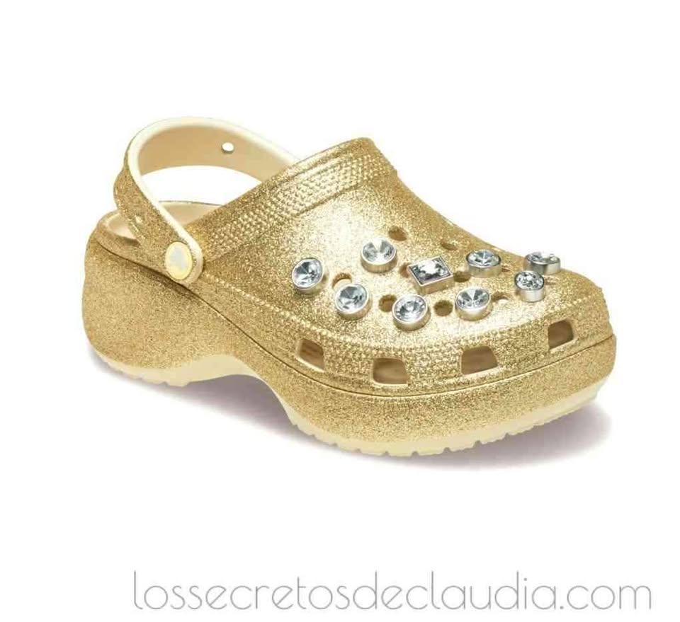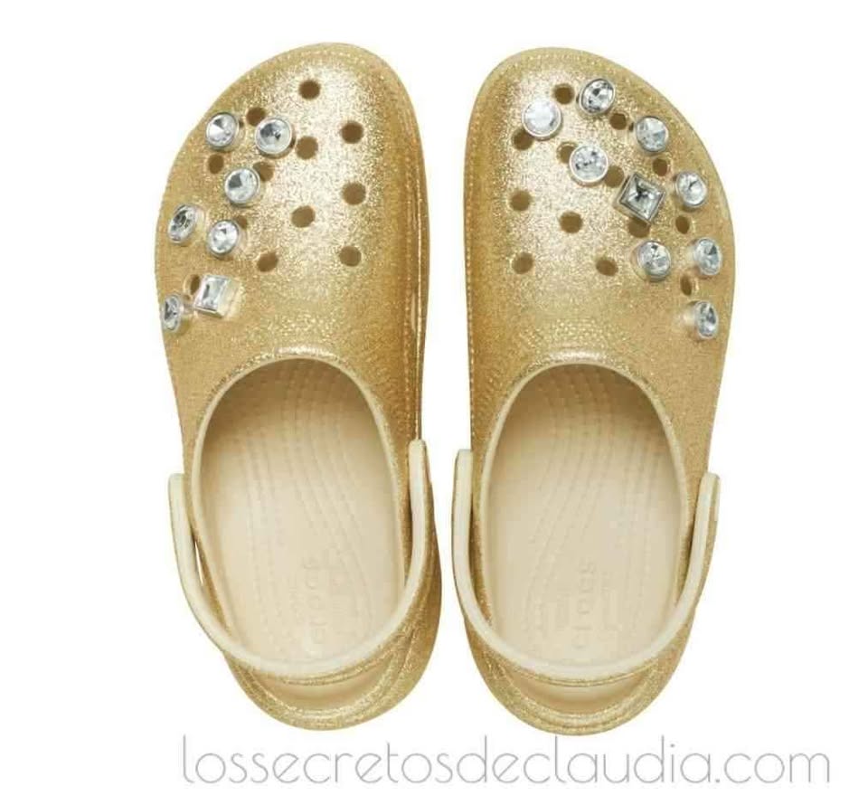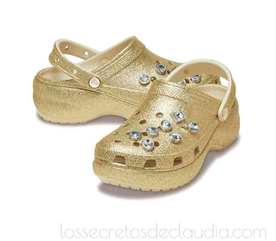 Amados y odiados a partes iguales, los Crocs Classic Platform Glitter Embellished, un tono dorado llevan una decoración de joyas. Denominados así por la marca patentada, conocidos como ugly sandals (las sandalias más feas), amenazan con convertirse en una de las tendencias del street style más controvertidas del verano 2025. Modelos e influencers han confirmado el regreso de estos zuecos de fibra sintetica, que destacan por sus agujeros que recuerdan a los del queso gruyere y sus colores vivos